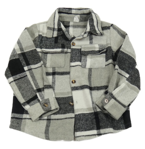 Sivo-čierno-biela kockovaná vlnená košeľová bunda SHEIN