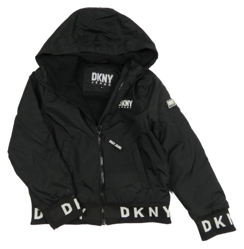 Čierna šušťáková zateplená bunda s logom a kapucňou DKNY