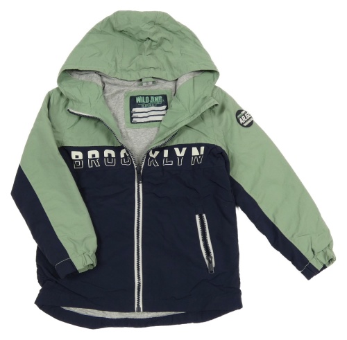 Tmavomodro-khaki šušťáková jarná bunda s nápisom a kapucňou dopodopo