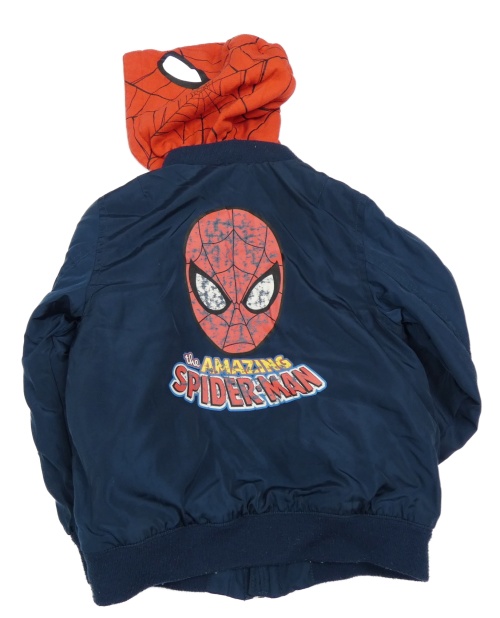 Tmavomodrá šušťáková jarná bunda so Spidermanem a teplákovou kapucňou H&M