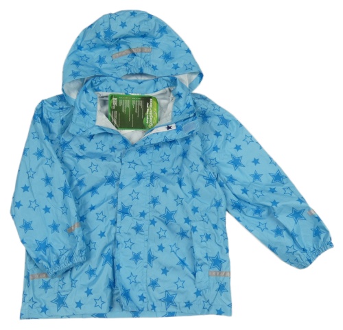 Nové - Modrá šušťáková nepromokavá bunda s hviezdami a kapucňou Papagino