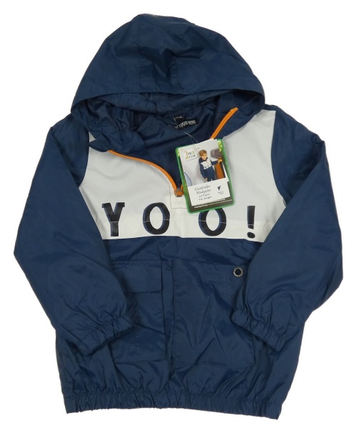 Nové - tmavomodro-biela šušťáková jarná bunda s nápisom a kapucňou