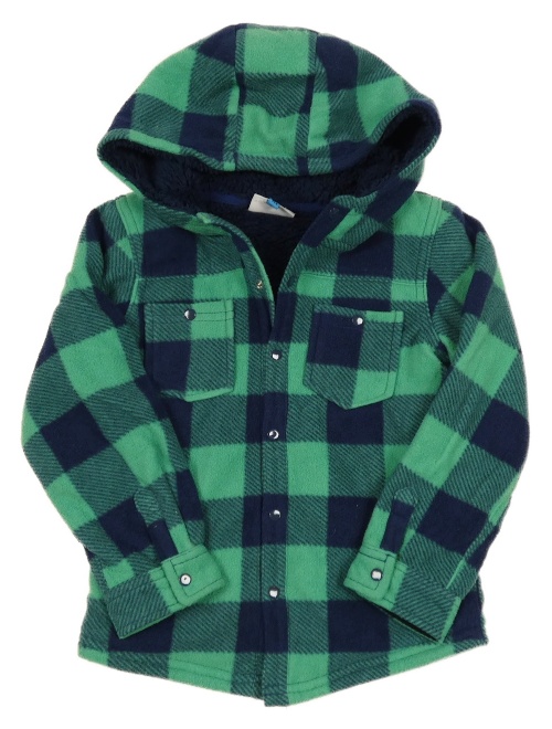 • Zeleno-tmavomodrá kockovaná fleecová zateplená košeľová bunda s kapucňou huLLabaLOO