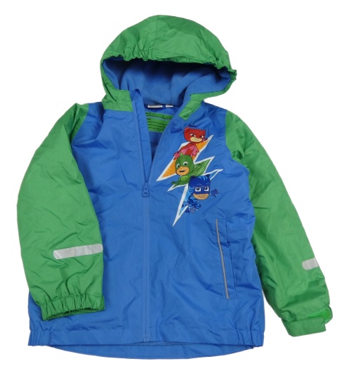 Modro-zelená šušťáková jarná bunda s PJMASKS a kapucňou