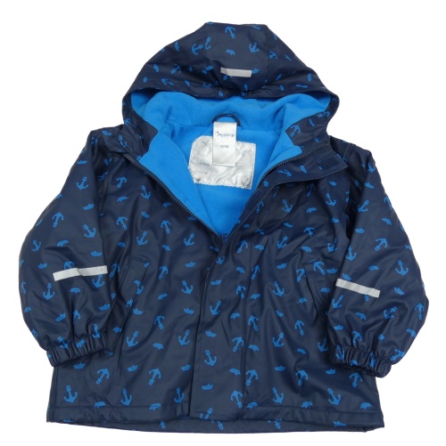 Tmavomodrá nepromokavá jarná bunda s kotvami a kapucňou Impidimpi