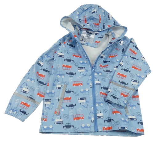 Svetlomodrá nepromokavá bunda s autami a kapucňou Lupilu
