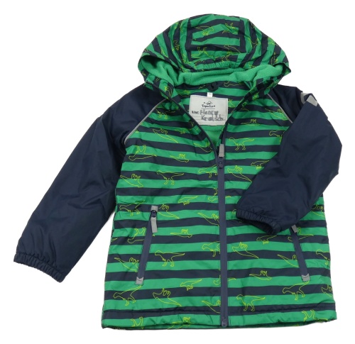 Tmavomodro-zelená pruhovaná šušťáková zateplená bunda s kapucňou Topolino