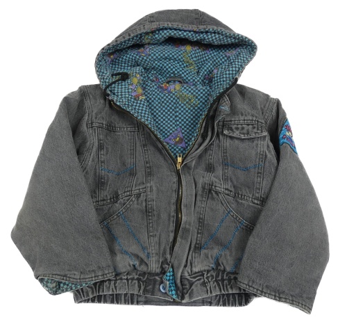 Tmavosivá rifľová zateplená bunda s kapucňou