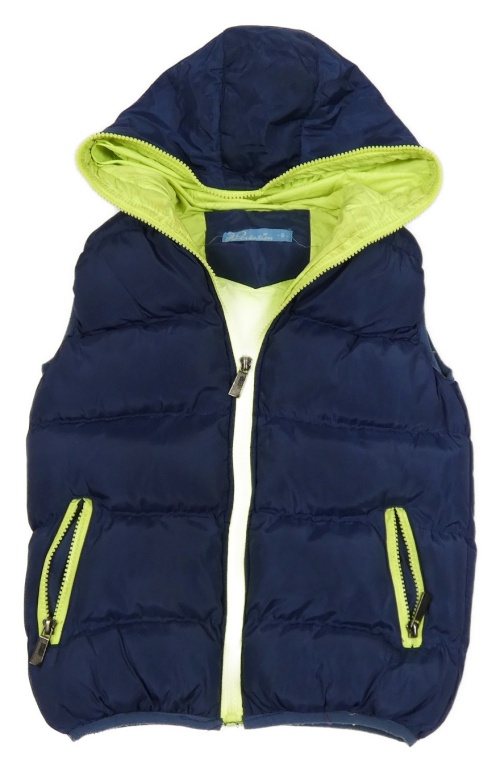 Tmavomodrá šušťáková zateplená vesta s kapucňou