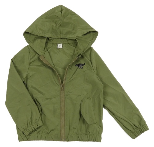 Khaki šušťáková bunda s dinosaurom a kapucňou Shein