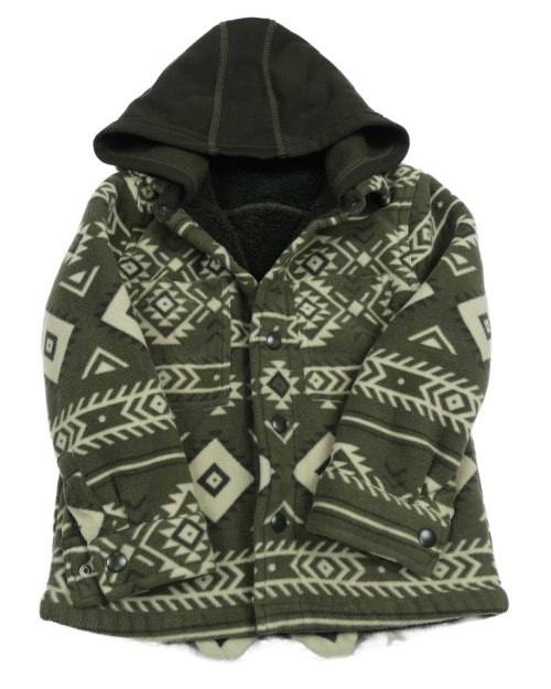 Khaki vzorovaná fleecová zateplená košeľová bunda s kapucňou St. Bernard