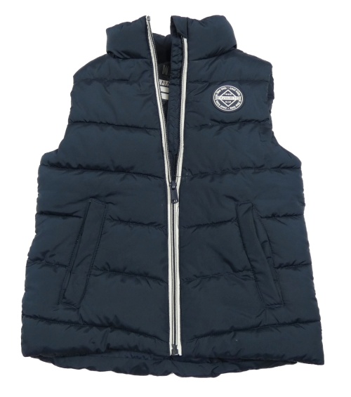 Tmavomodrá šušťáková zateplená vesta s nášivkou Dopodopo