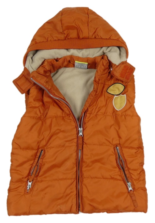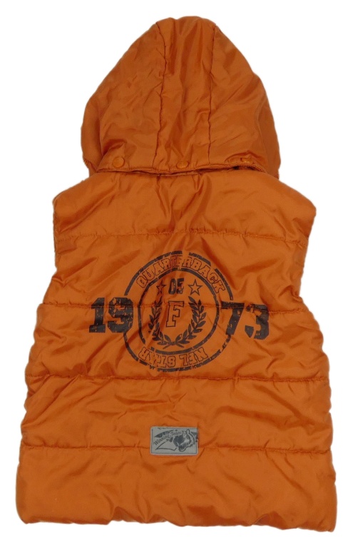 Tehlová šušťáková zateplená vesta s nášivkami a kapucňou Topolino