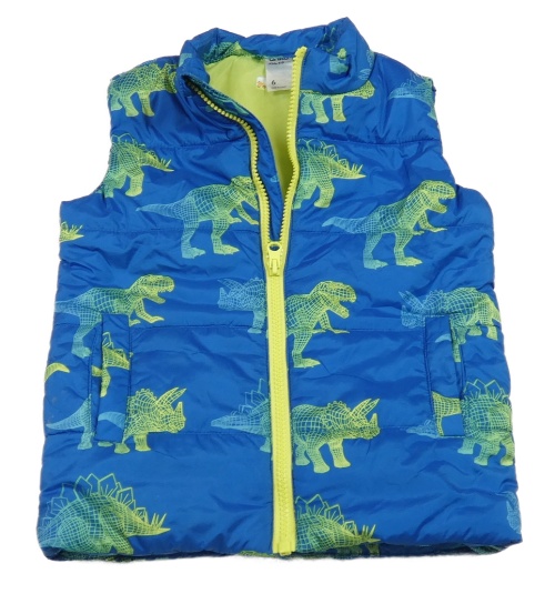 Modrá šušťáková zateplená vesta s dinosaurami Anko