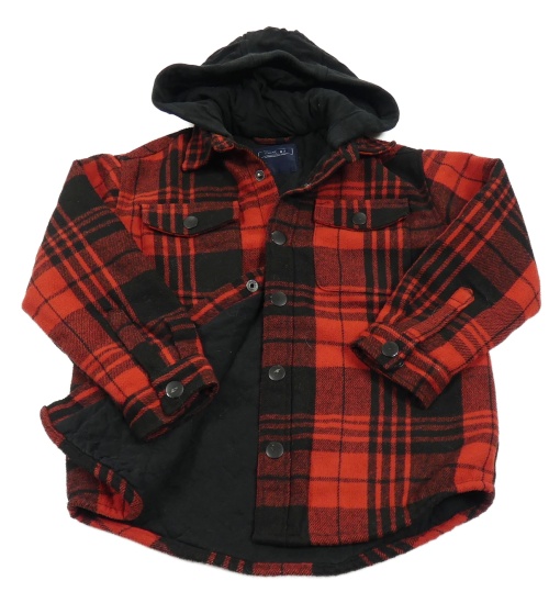 Červeno-čierna kockovaná košeľová podšitá bunda s kapucňou Next