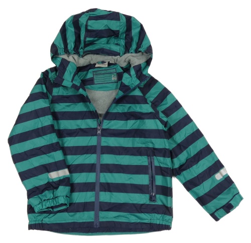 Zeleno-tmavomodrá šušťáková pruhovaná lehce zateplená bunda s kapucňou Impidimpi