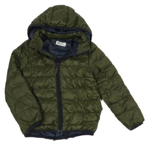 Khaki prešívaná šušťáková zateplená bunda s kapucňou H&M