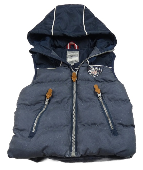 Tmavomodrá melírovaná prešívaná šušťáková zateplená vesta s nášivkou a kapucňou CAMPUS