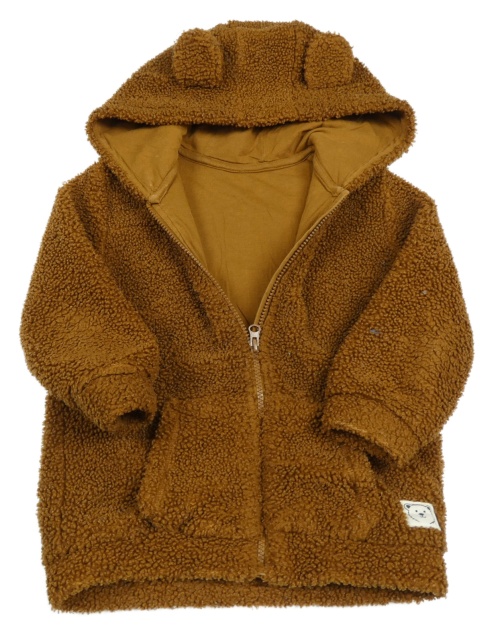 Hnedá huňatá podšitá bunda s medvedíkom a kapucňou s uškami Matalan