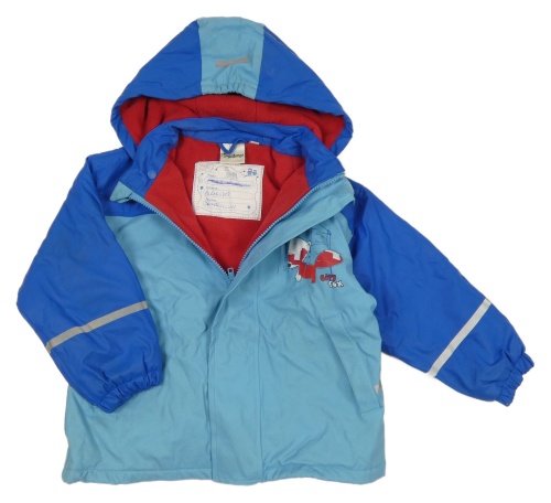 Světlemodro-tmavomodrá vodeodolná zateplená bunda s líškou a kapucňou Impidimpi