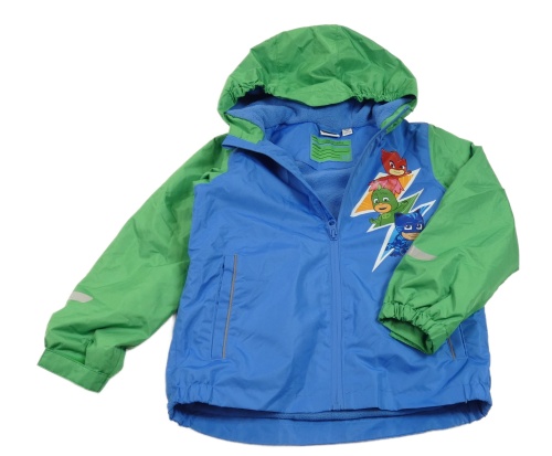 Modro-zelená šušťáková jarná bunda s obrázkami a kapucňou