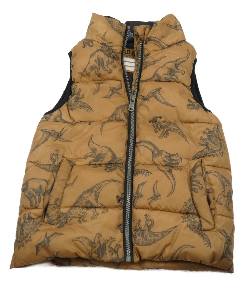 Béžovo-tmavomodrá šušťáková prešívaná zateplená vesta s dinosaurami Dopodopo