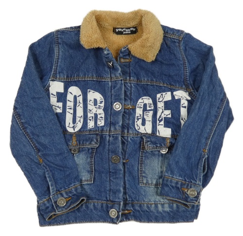 Modrá rifľová zateplená bunda s nápisom