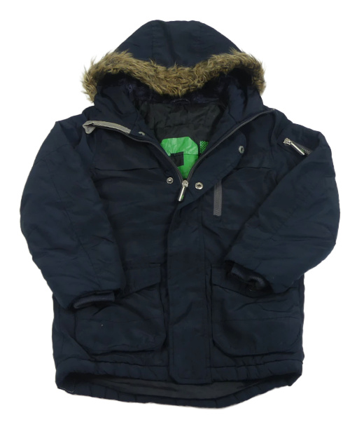 Tmavomodrá šušťáková zimná bunda s kapucňou s kožešinou Next