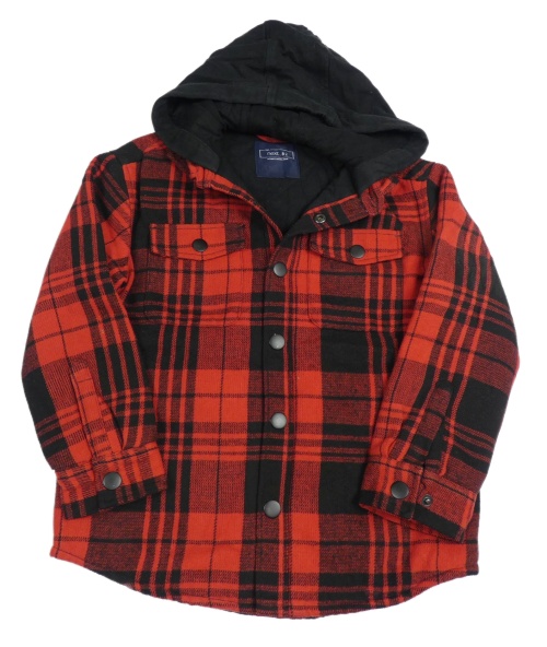 Červeno-čierna kockovaná zateplená košeľová bunda s kapucňou Next