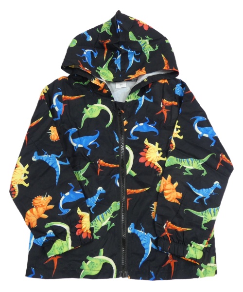 Čierna šušťáková ľahká bunda s dinosaurami a kapucňou