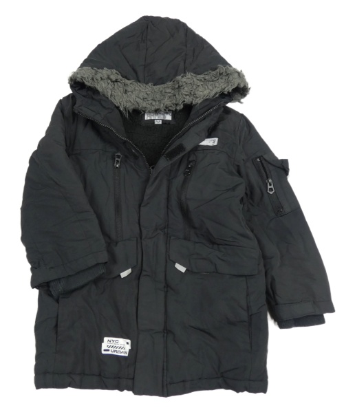 Čierna šušťáková zimná bunda s nášivkou a kapucňou s kožešinou F&F