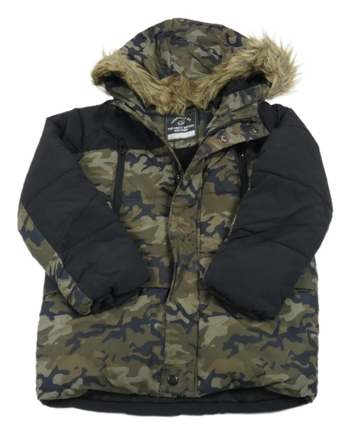 Kaki-čierna army šušťáková zimná bunda s kapucňou s kožešinou George