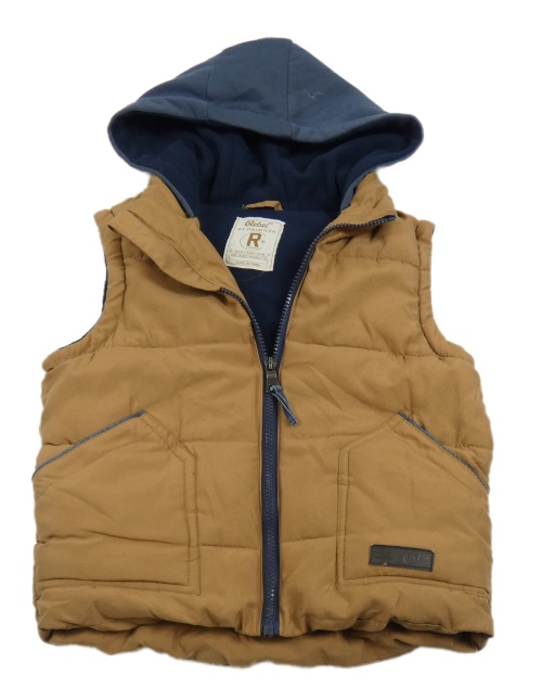 Béžovo-tmavomodrá šušťáková zateplená vesta s kapucňou Rebel