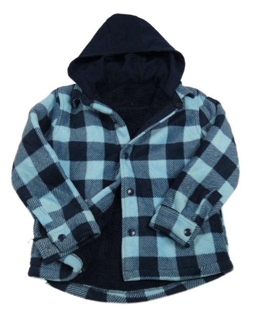 Světle-tmavomodrá kockovaná fleecová košeľová zateplená bunda s kapucňou Dunnes