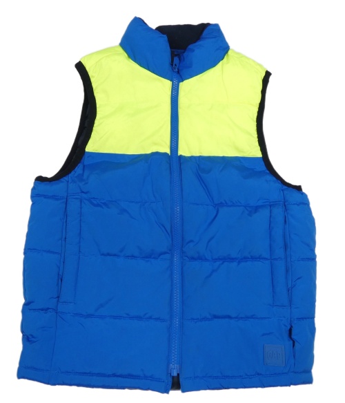 Modro-neónově žltá šušťáková zateplená vesta GAP