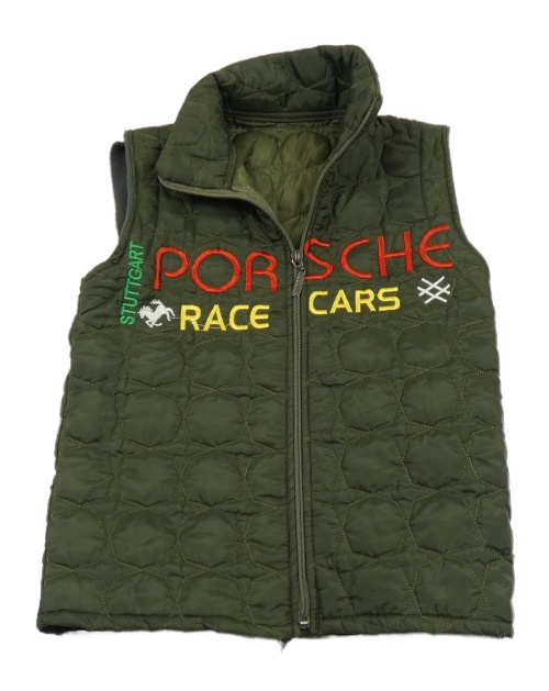Khaki prešívaná šušťáková zateplená vesta s nápisom