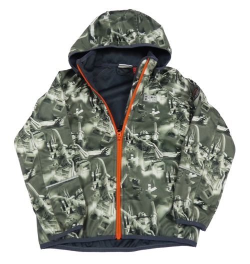 Khaki softshellová bunda s lego panáčky a kapucňou