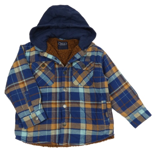 Modro-světlemodro-okrová kockovaná zateplená košeľová bunda s kapucňou Next