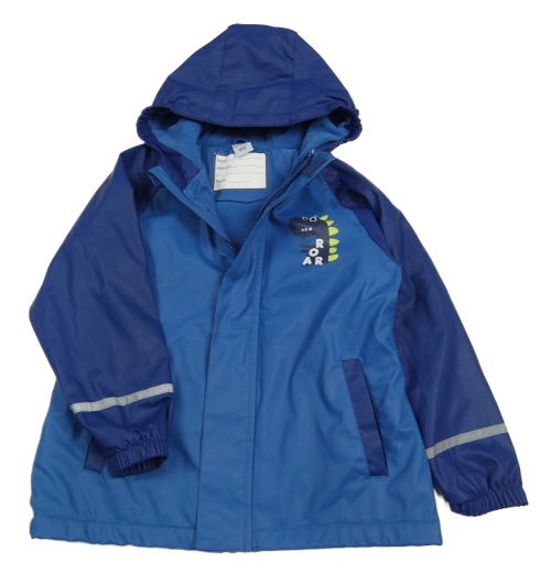 Tmavomodrá nepromokavá lehce zateplená bunda s dinosaurom a kapucňou Kiki&Koko
