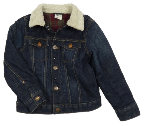 Tmavomodrá zateplená rifľová bunda s huňatým golierikom H&M