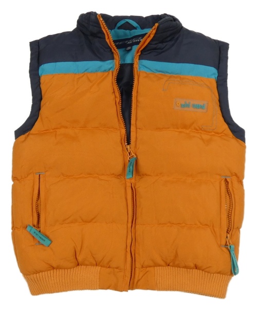 Oranžovo-tmavomodrá šušťáková zateplená vesta s nápisom Rebel