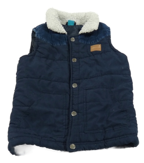 Tmavomodrá šusťákovo/manšestrová zateplená vesta s golierikom Little kids