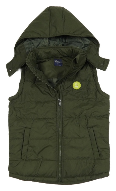 Khaki šušťáková prešívaná zateplená vesta s odopínacíá kapucňou Pinekids