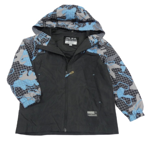 Čierno-modro-sivá šušťáková jarná bunda s kapucňou F&F