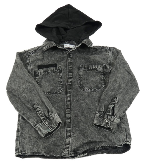 Tmavosivá plesňová rifľová košeľová bunda s odopínacíá kapucňou ZARA