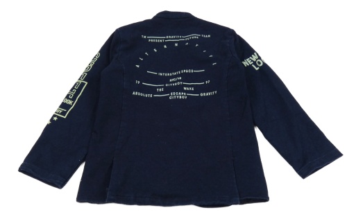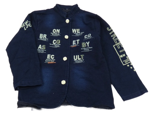 Tmavomodrý teplákový riflový kabátek s nápismi