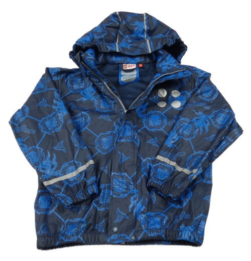 Tmavomodrá nepromokavá bunda s obrázkami a kapucňou