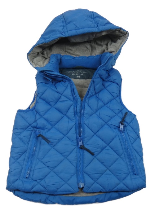 Modrá šušťáková prešívaná zateplená vesta s odopínacíá kapucňou H&M