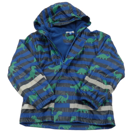 Modro-čierna pruhovaná pogumovaná jarná bunda s dinosaurami a kapucňou Kids
