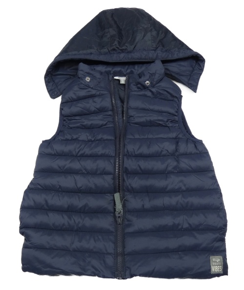 Tmavomodrá šušťáková prešívaná zateplená vesta s odopínacíá kapucňou Kids